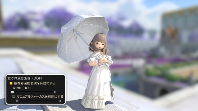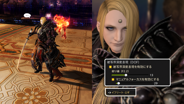 ※被写界深度表現を適用するためには、メインコマンド「システムメニュー」→「システムコンフィグ」→「グラフィック設定」→「カットシーン効果」の「被写界深度表現を有効にする」をONにしておく必要があります。